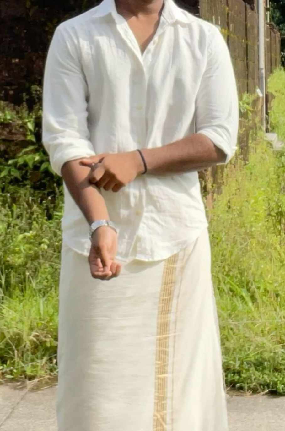Let me tell you guys .... my Bava looks unfairly handsome in a simple pancha and shirt. It’s his daily wear, but every day he looks like a hero straight out of a telugu movie.